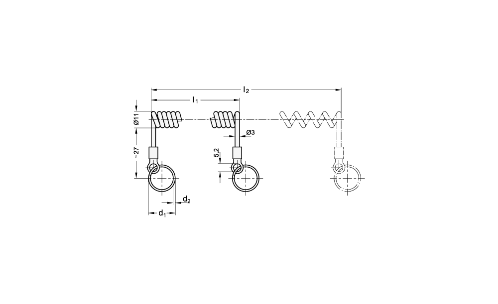 Spiral-Halteseile GN 111.4 werden in Verbindung mit leichgewichtigen Teilen wie z.B. Steckbolzen und Kugelsperrbolzen eingesetzt.