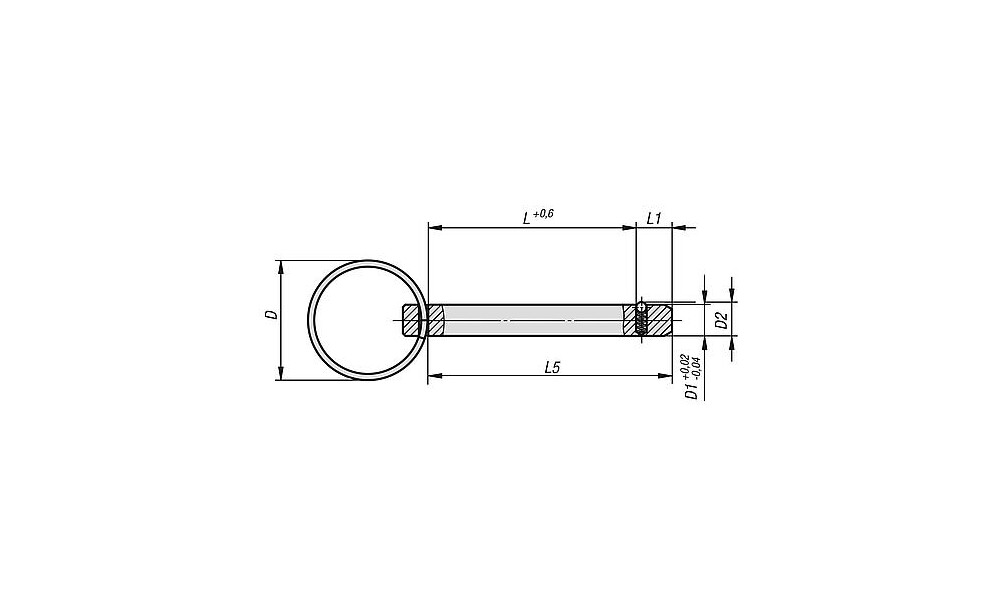 STECKBOLZEN MIT SCHLÜSSELRING, MIT AXIALSICHERUNG, D1=6 L=20, STAHL, KOMP:EDELSTAHL
