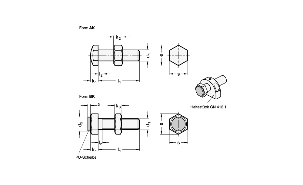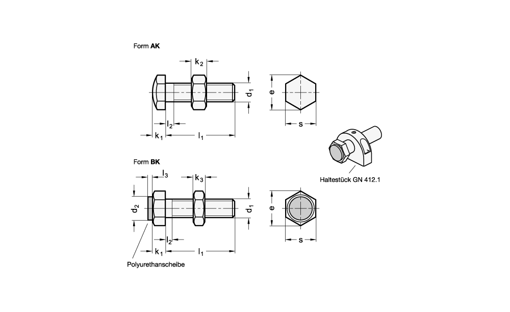 - Form: AK - Anschlagfläche, mit Kuppe, gehärtet