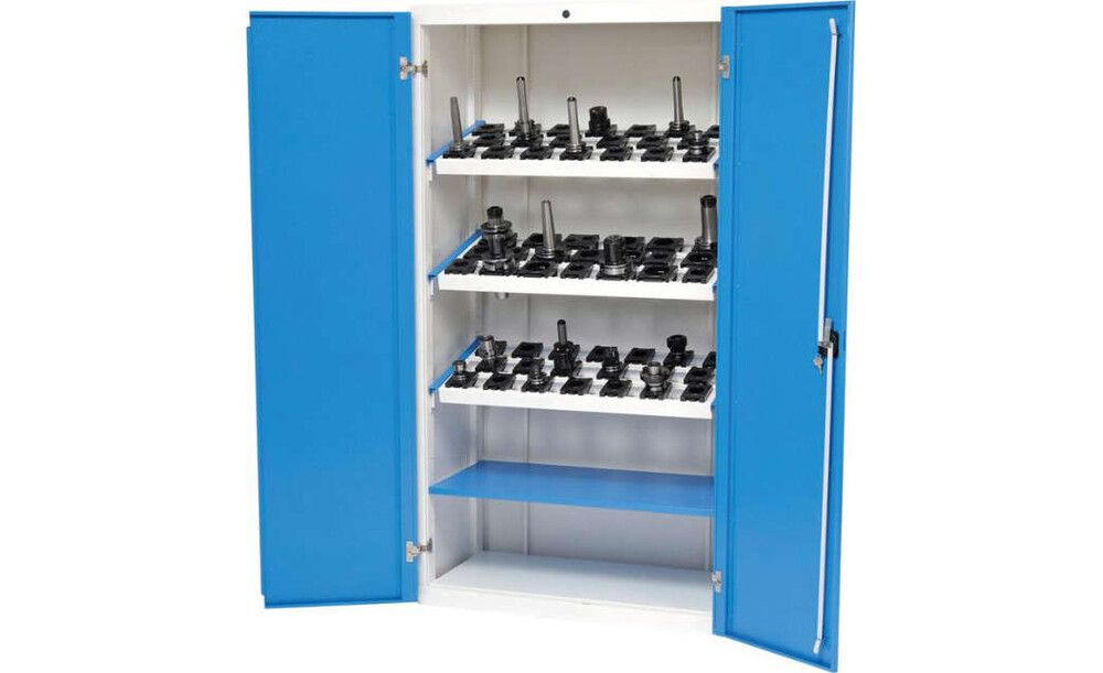 -CNC-Hochschrank BxTxH 980x500x1838 mm Diese CNC-Schränke sind sehr flexibel. Je nach Werkzeughöhe können beliebig viele Werkzeugrahmen waagerecht oder geneigt eingehängt werden.