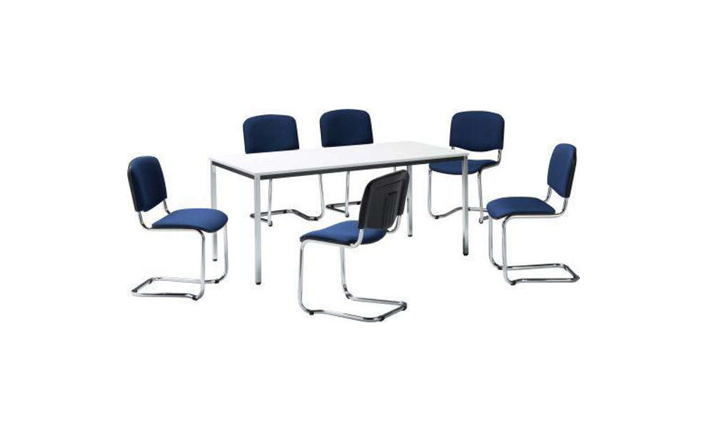- Ausführung: 1 Tisch 1400x800 mm + 6 Schwinger blau