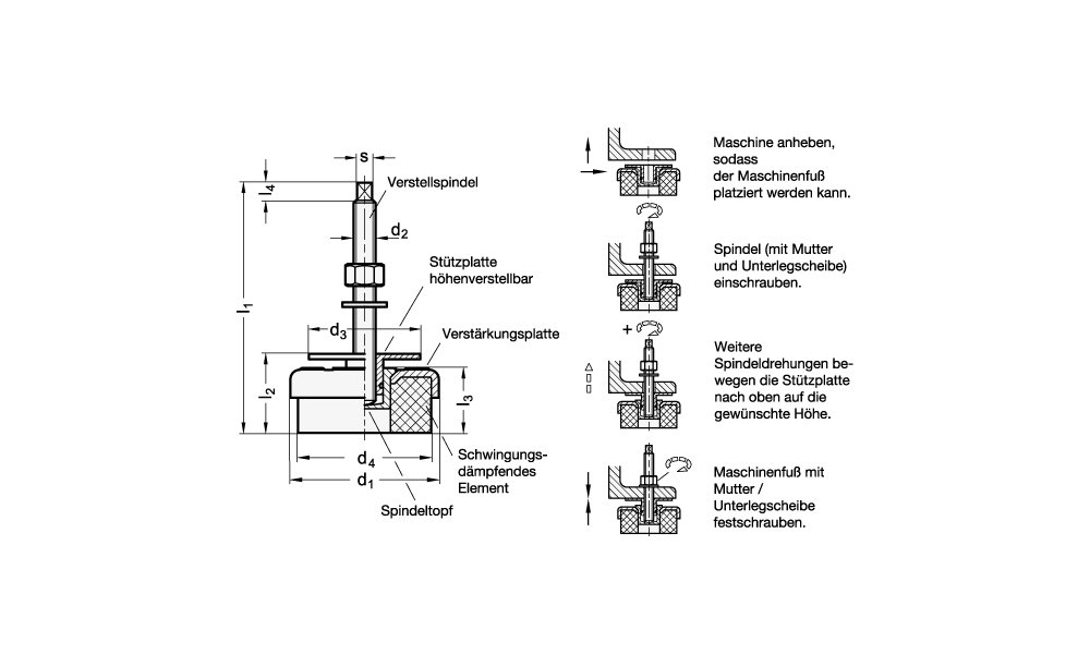 Maschinenfüße, Stahl, mit Schwingungsdämpfung