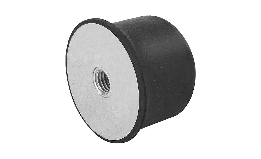 GUMMIPUFFER BALLIG INNENGEWINDEM10, D=50, H=35 STAHL, KOMP:ELAST. NATURKAUTSCHUK SHORE 55A, SCHWARZ