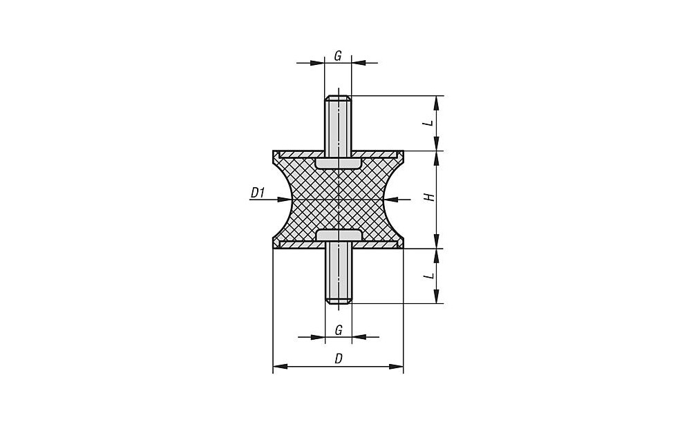 GUMMIPUFFER TYP AT TAILLIERT AUSSENGEWINDE M06X18, D=20, H=15, STAHL, KOMP:ELAST. NATURKAUTSCHUK SHORE