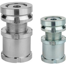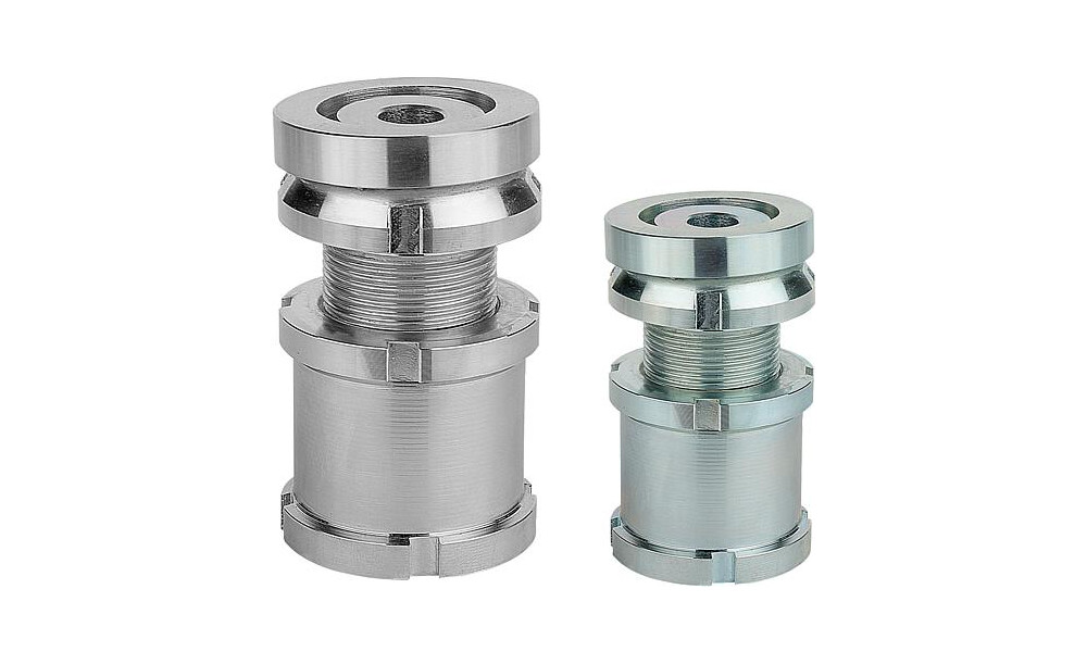 Die Höhenverstell-Elemente mit Kugel-Ausgleichsscheibe und Kontermutter finden dort Verwendung, wo es um die Aufstellung und das Ausrichten von Motoren, Aggregaten, Antriebselementen und Fertigungsstraßen geht. Durch diese kann eine exakte Anlage bei der Montage von schrägen Auflageflächen bis zu einem Neigungswinkel von ca. 4° erfolgen. Dabei dient die Kontermutter zur Sicherung einer vorgegebenen Einstellung.
