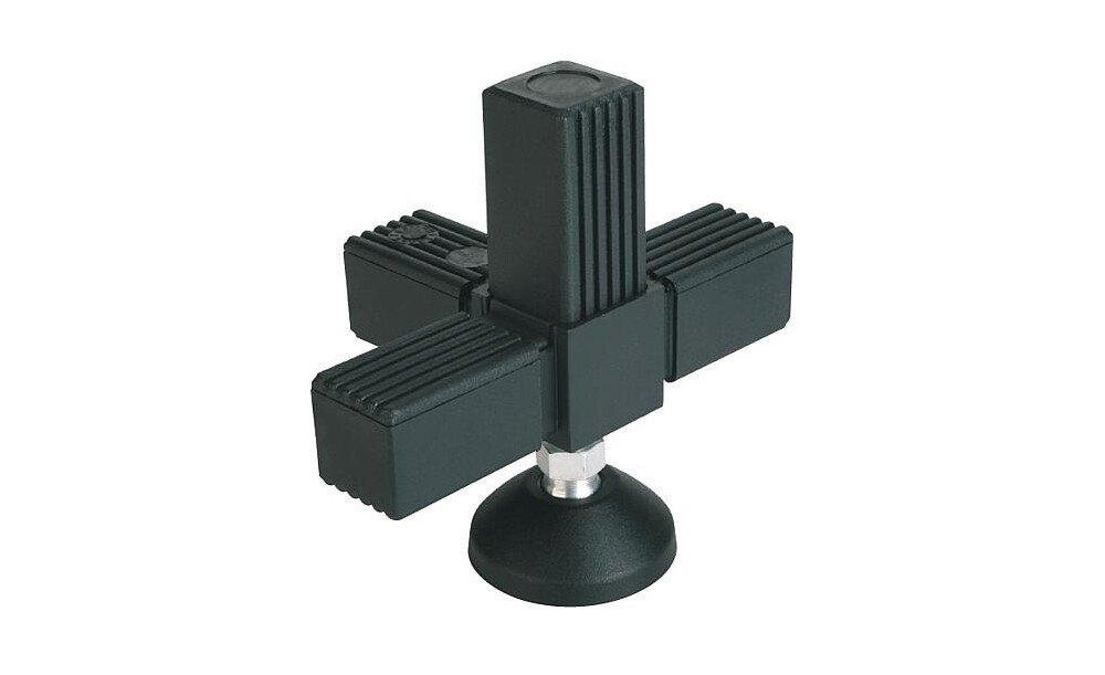 Stecksystem ohne Schrauben. Die Steckverbinder werden einfach in das entsprechende Vierkantrohr eingesteckt. Demontierbar und mehrfach wiederverwendbar. Für die Montage von Gelenkfüße, Rollen etc.