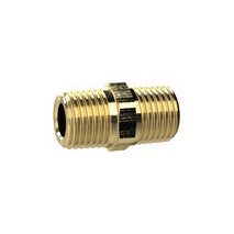 Doppelgewindenippel, R 3/8 a., R 3/8 a., SW 19, Messing, Arbeitsdruck max. 25 bar, Betriebstemp. max. 150 °C.