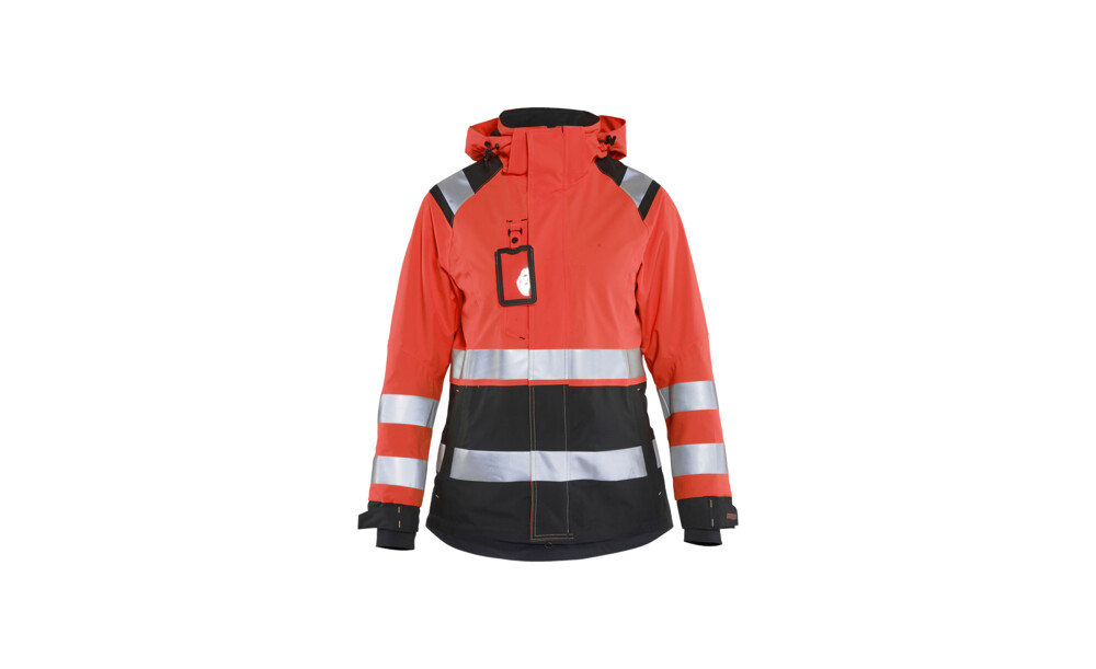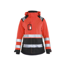 Wind- und wasserdichte Außenjacke für Damen. Die Jacke besitzt ein aufgerautes Mesh Futter und alle Nähte sind verschweißt. An den beanspruchtesten Stellen wurden dunkle Kontrastfarben eingesetzt, um vor Verschmutzung zu schützen. Für einen erhöhten Tragekomfort sorgen eine abnehmbare Kapuze und ein hoher, mit Fleece gefütterter, Kragen. Die Bewegungsfreiheit wird durch einen Zwei-Wege-Reißverschluss, vorgeformte Arme und einen verlängerten Rücken erhöht. 50 mm breite Reflexstreifen sorgen für Sichtbarkeit. Intelligente Taschenlösungen bieten enorm viele Verstaumöglichkeiten. Zertifiziert nach EN 343. EN ISO 20471, Klasse 2.