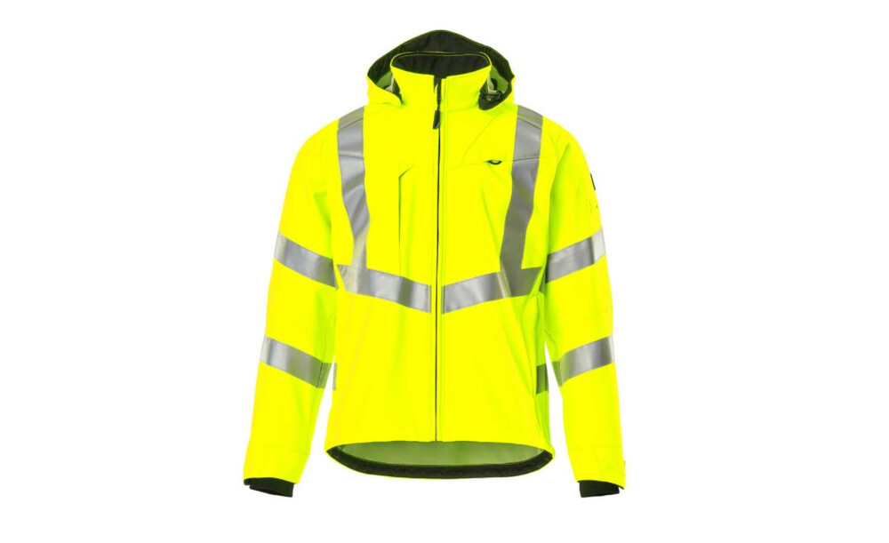 Fluoreszierend und mit Reflexschulterstreifen sowie schräg verlaufenden Reflexen. Atmungsaktiv, winddicht und wasserabweisend. Fleece an der Innenseite. Verschluss mit Reißverschluss und inwendiger Wetterschutzleiste. Kapuze ist abnehmbar, gefüttert und mit verstellbaren Elastikschnüren versehen. Stehkragen. Innentaschen. Reißverschlussinnentasche speziell für Handys entwickelt, mit Öffnung sowie Schlaufen für das Kopfhörerkabel. Rücken ist verlängert. Brusttasche mit Reißverschluss. D-Ring. Stifttasche. Ergonomisch geschnittene Ärmel ermöglichen hohe Bewegungsfreiheit. Rippenbündchen (verdeckt unter der Wetterschutzleiste) an den Handgelenken. Manschetten mit Verstärkungen aus CORDURA®-Gewebe und Klettverschluss. Vordertaschen mit Reißverschluss.