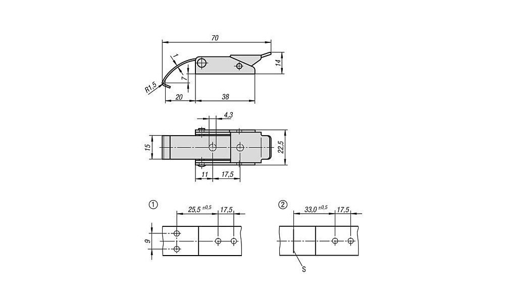 SPANNVERSCHLUSS MIT FEDERBÜGEL, ANSCHRAUBBOHRUNG VERDECKT, FORM:A, EDELSTAHL 1.4301 BLANK, F1=500