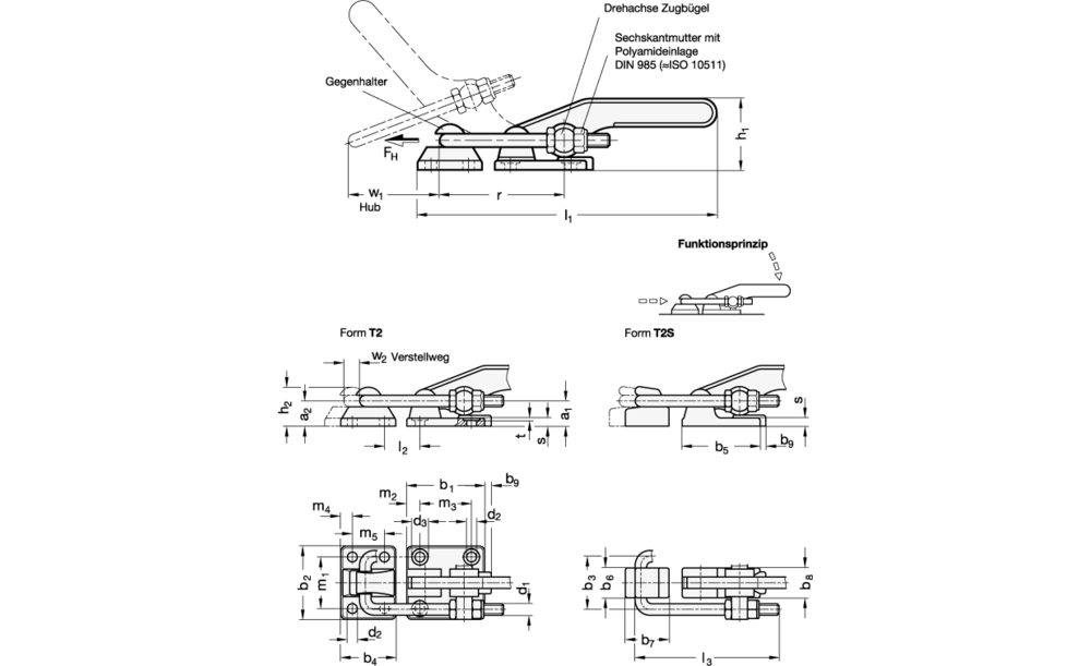 - AusführungT2S - zum Anschweißen, mit Zugbügel, mit Gegenhalter