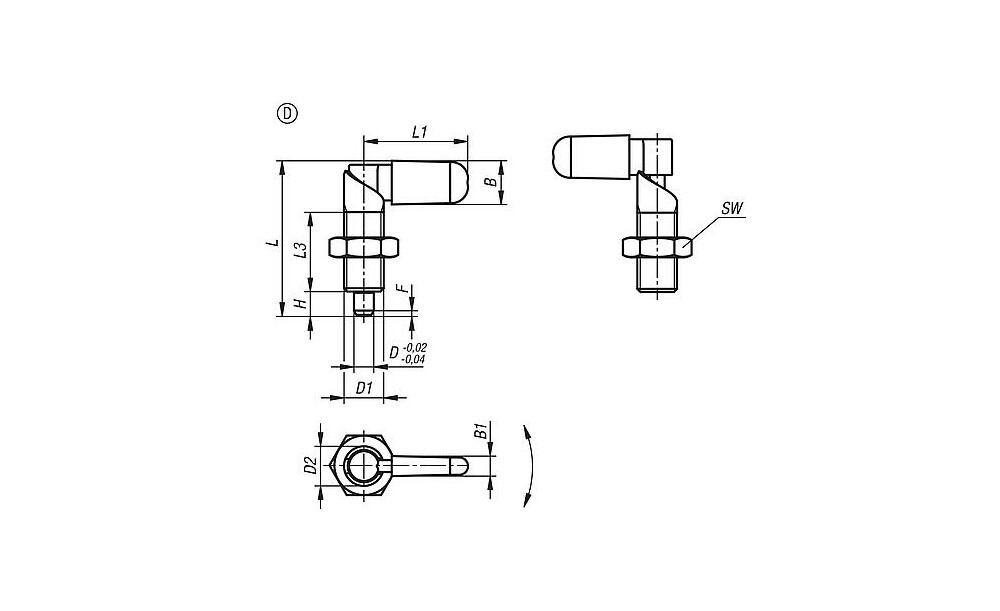 - AusführungD mit Gewindehülse, Mutter, Kappe