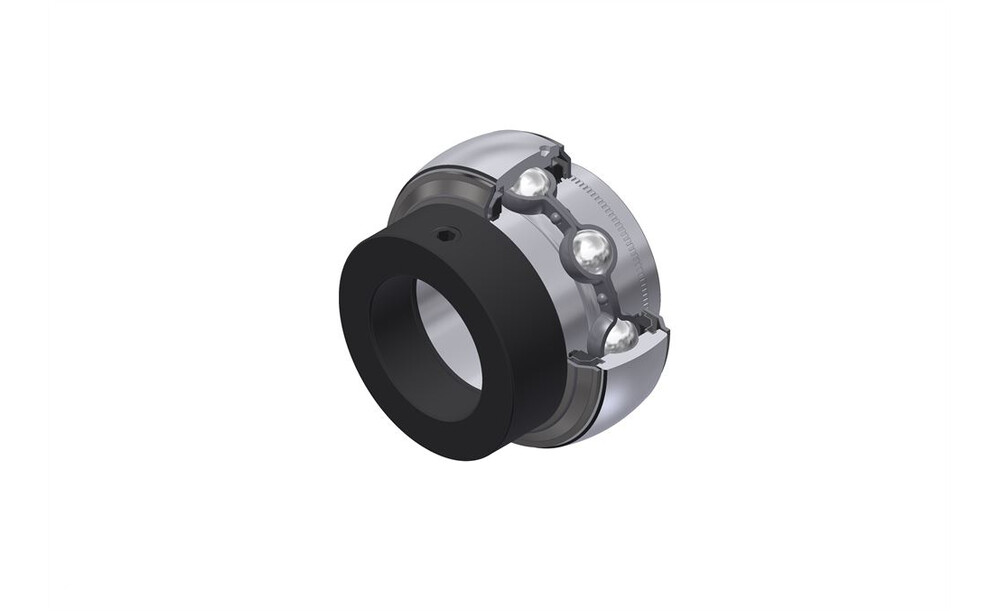 Verzinkter Lagereinsatz, Sphärischer Außenring, Befestigung durch Exzenterspannring, AGR-Dichtung, wartungsfrei
