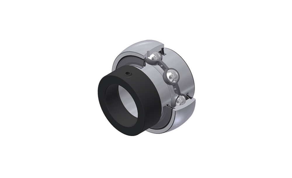 Sphärischer Außenring mit Verdrehsicherung, Befestigung durch Exzenterspannring, Dichtung mit Schleuderscheibe