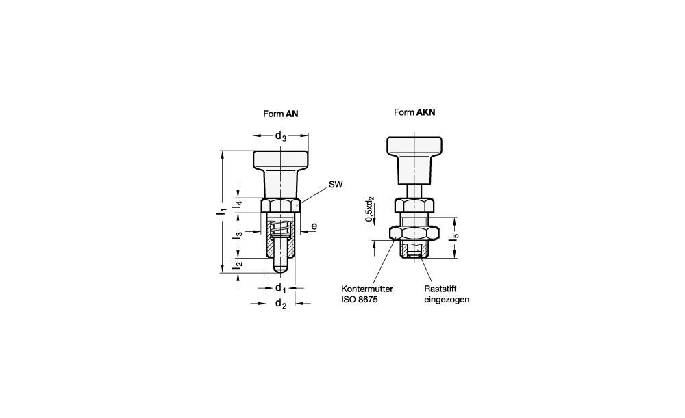 - Form: AKN - mit Kontermutter, mit Edelstahl-Knopf