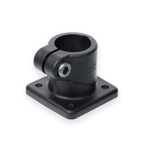 Die Klemmbohrung der Fuß-Klemmverbinder GN 163.9 ist senkrecht zur Fläche des Flansches angeordnet. Sie nimmt handelsübliche Konstruktionsrohre über den gesamten Querschnitt der Bohrung vollflächig auf.