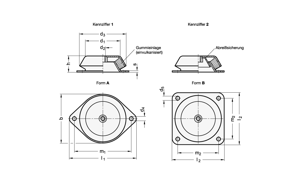 Die Ausführung mit Abreißsicherung (Kennziffer 2) schützt die Maschinenfüße vor der Zerstörung durch Abreißen bei Überlastung durch Zug.