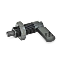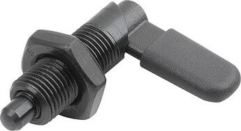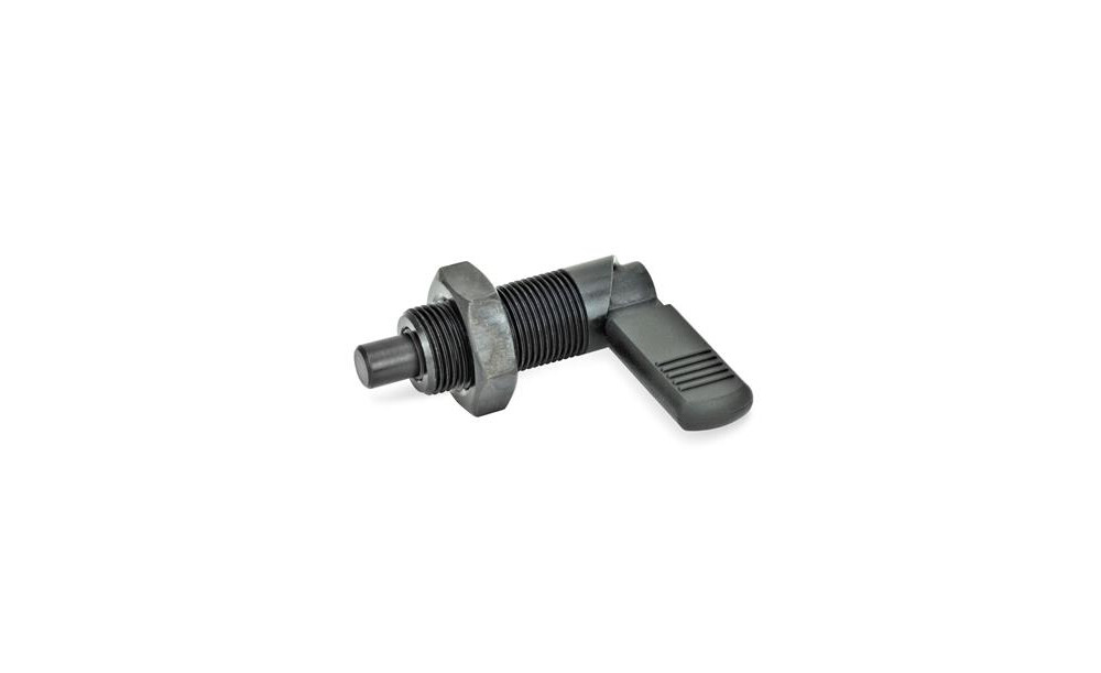 Rastriegel GN 612 werden eingesetzt, wenn der Raststift zeitweise nicht vorstehen soll. Durch Drehen des Riegels um 180° wird der Raststift eingezogen. Die Rastkerbe ermöglicht ein sicheres Positionieren.