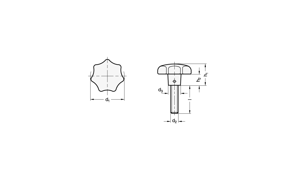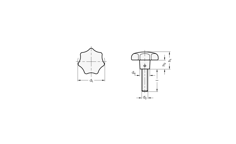 Sterngriffschrauben, Gusseisen, Stahl-Gewindestift