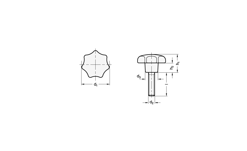 Sterngriffschrauben GN 6336.4 entsprechen DIN 6336 Form L.