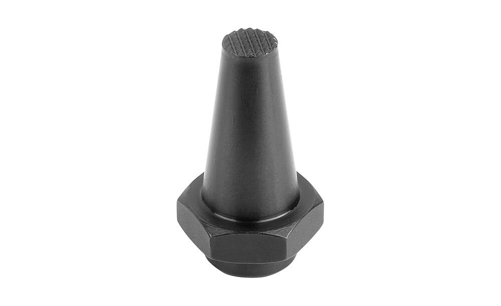 AUFLAGEBOLZEN MIT ZAPFEN, FORM:C GERIFFELT, INNENGEWINDE D=M10, H=20, SW=24, VERGÜTUNGSSTAHL VERGÜTET UND