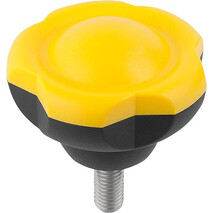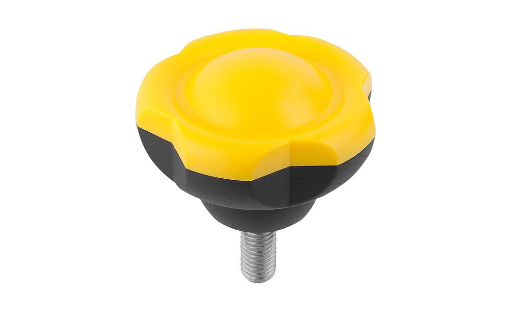 FÜNFSTERNGRIFF D1=50 D=M10X30 H=34,8, FORM:L, THERMOPLAST SCHWARZGRAU RAL7021, KOMP:EDELSTAHL, DECKEL:GELB