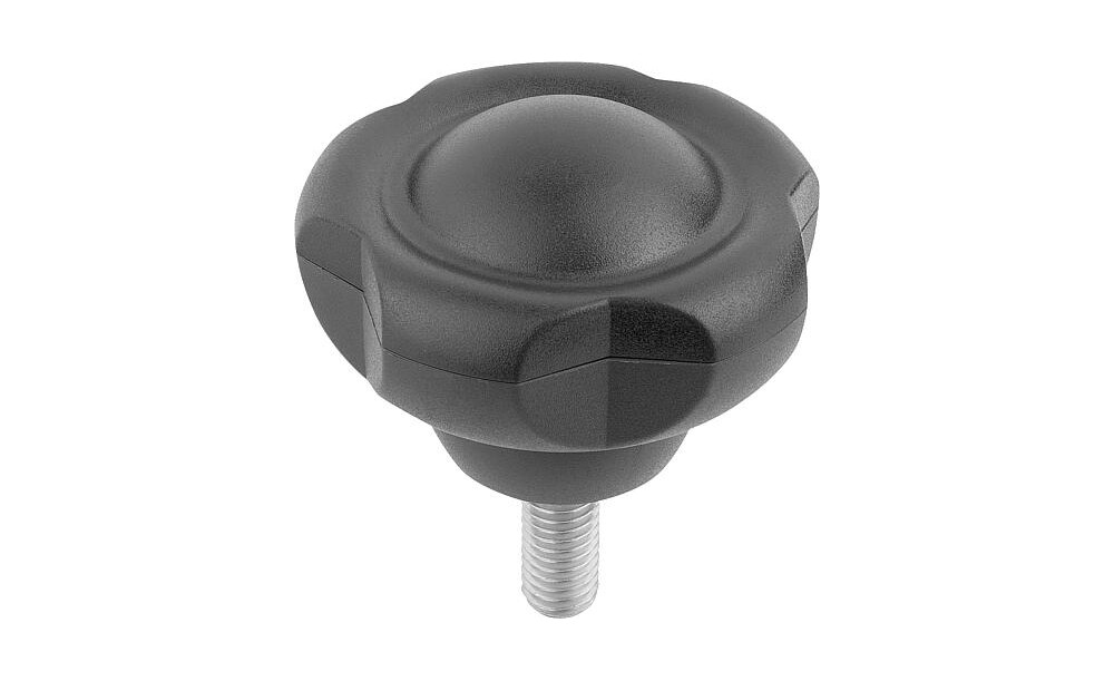 FÜNFSTERNGRIFF D1=50 D=M10X30 H=34,8, FORM:L, THERMOPLAST SCHWARZGRAU RAL7021, KOMP:EDELSTAHL,
