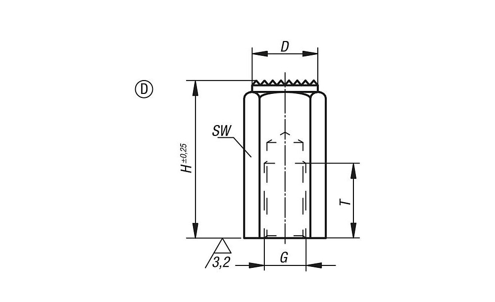 VORRICHTUNGSFUß, G=M16 H=50, FORM:D VERGÜTUNGSSTAHL, SW=24