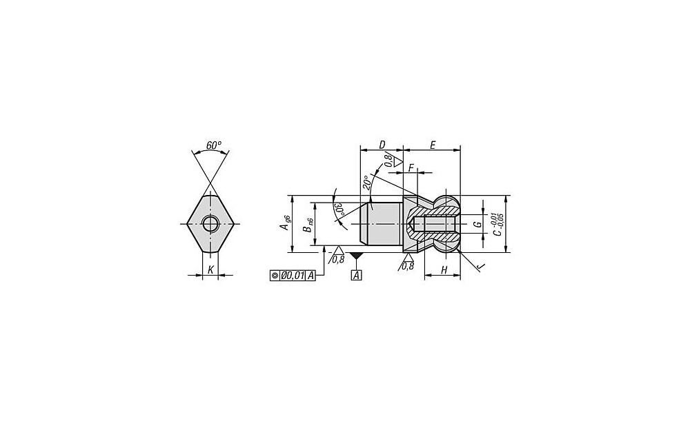 AUFNAHMEBOLZEN INNENGEWINDE EINSEITIG GR.1 C=10, A=10, G=M03, FORM:D ABGESETZT M.KUGELANS.ABGE, WERKZEUGSTAHL
