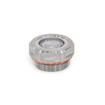 Diese Vorspannung macht die Schaugläser zu 100% dicht und besonders widerstandsfähig gegen dynamische Drücke und hohen Temperaturen beim Einsatz mit flüssigen und gasförmigen Medien. Zudem bietet das Schauglas ein hohes Maß an Sicherheit, da sich mögliche Schäden durch kleinere Risse ankündigen und ein Bersten der Scheibe ausbleibt. Der Dichtring ist in einen radialen und planseitigen Einstich eingebettet und kann beim Anziehen nicht herausgequetscht werden.