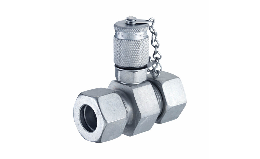 Messkupplung Stauff Test 20 mit 24° Dichtkegel / O-Ring schwere Baureihe 06S Metallschutzkappe NBR-Dichtung Stahl, Zink-Nickel