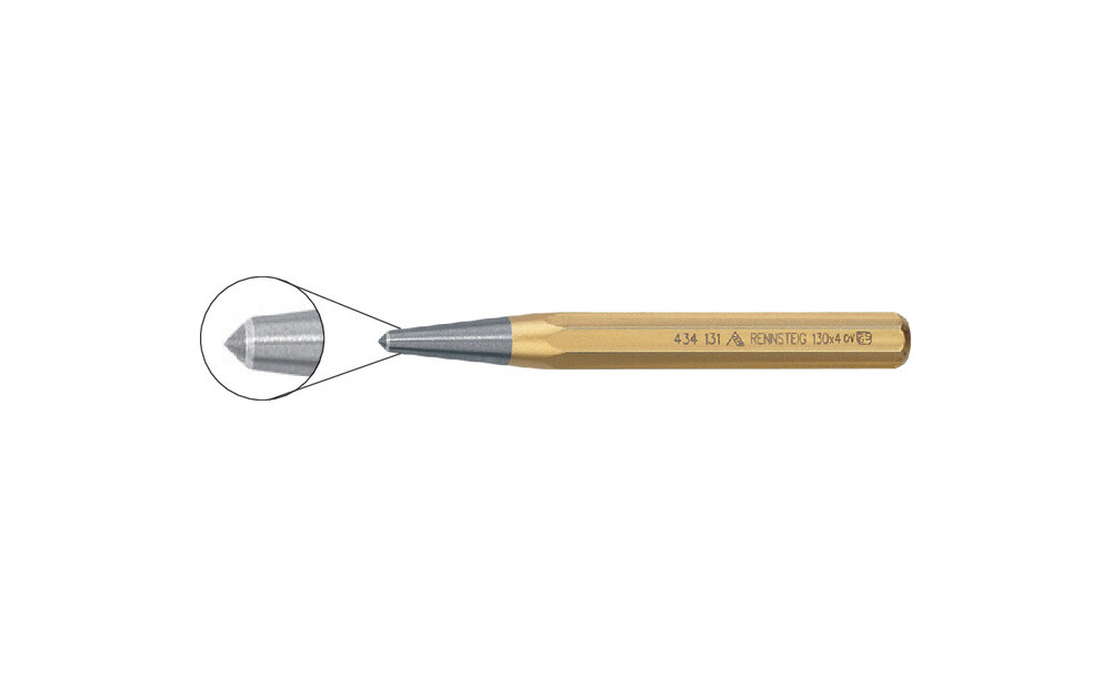 - Ausführungaus Chrom-Vanadium-Lufthärtestahl mit eingesetzter Hartmetallspitze, Achtkantschaft