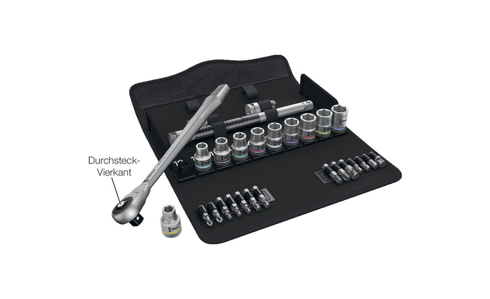 - Inhalt.: 10 Steckschlüssel-Einsätze Sechskant 10 | 11 | 12 | 13 | 14 | 15 | 16 | 17 | 18 | 19 mm 2 Bits 32 mm PH | 2 | 34 Bits 30 mm Außensechskant 5 | 6 | 8 | 10 mm 8 Bits 35 mm TORX® T20 | T25 | T27 | T30 | T40 | T45 | T 50 | T551 Zyklop Metal Knarre mit Durchsteck-Vierkant1 Verlängerung mit Schnelldrehhülse 250 mm1 Adapter 5/16"-Außensechskant auf 1/2"-Außenvierkant1 Wobble-Verlängerung 52 mm