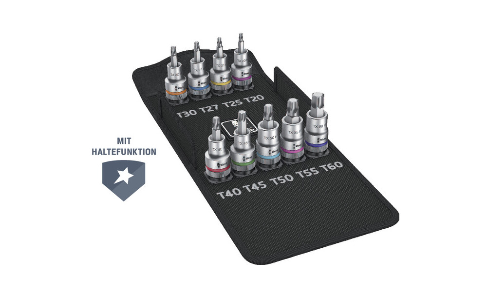 - Inhalt: 9 Schraubendreher-Einsätze TORX®, mit Haltefunktion