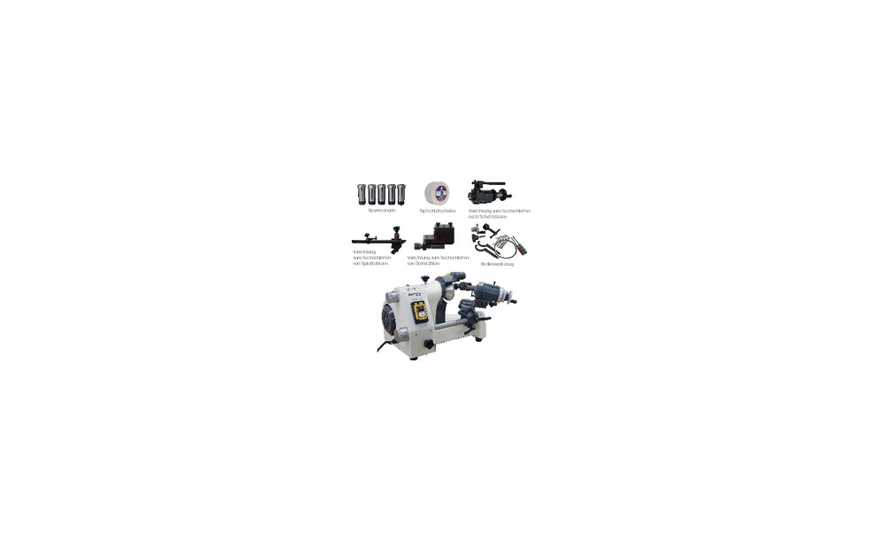 - viele Schwenk- und Einstellmöglichkeiten zum Herstellen von Gravierstichel (zylindrisch, zentrisch, kegelig)
