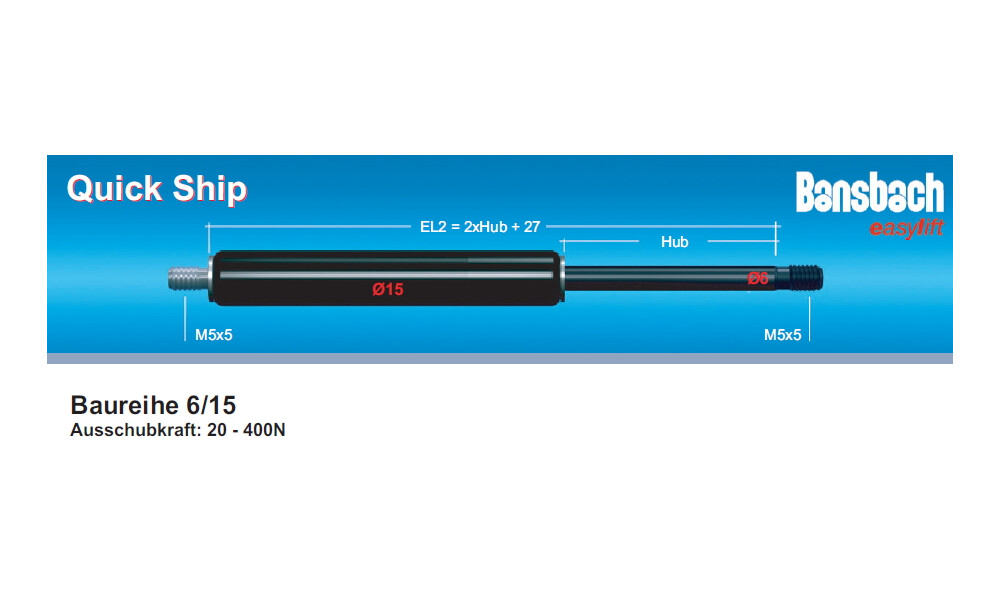 BANSBACH Quick Ship Gasfeder - Standard, Baureihe 6/15, Ausschubkraft 150N