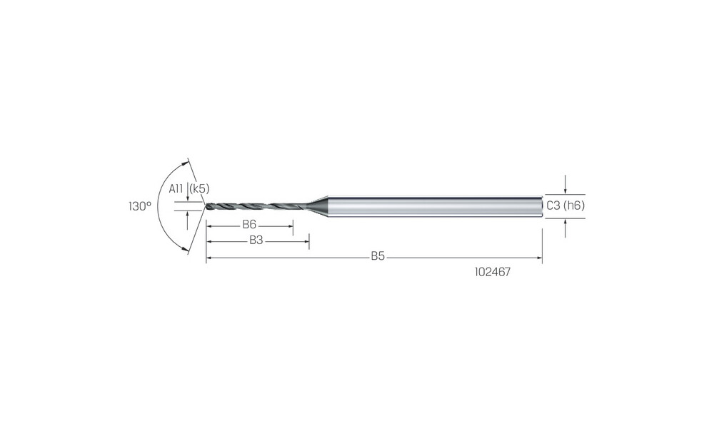 - spezielle Bohrerspitzengeometrie für hohe Schneideckenstabilität, kurze Späne und Selbstzentrierung