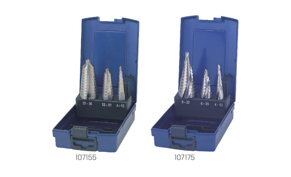 Satz in Kunststoffkassette zusammengestellt aus Stufenbohrer 107170