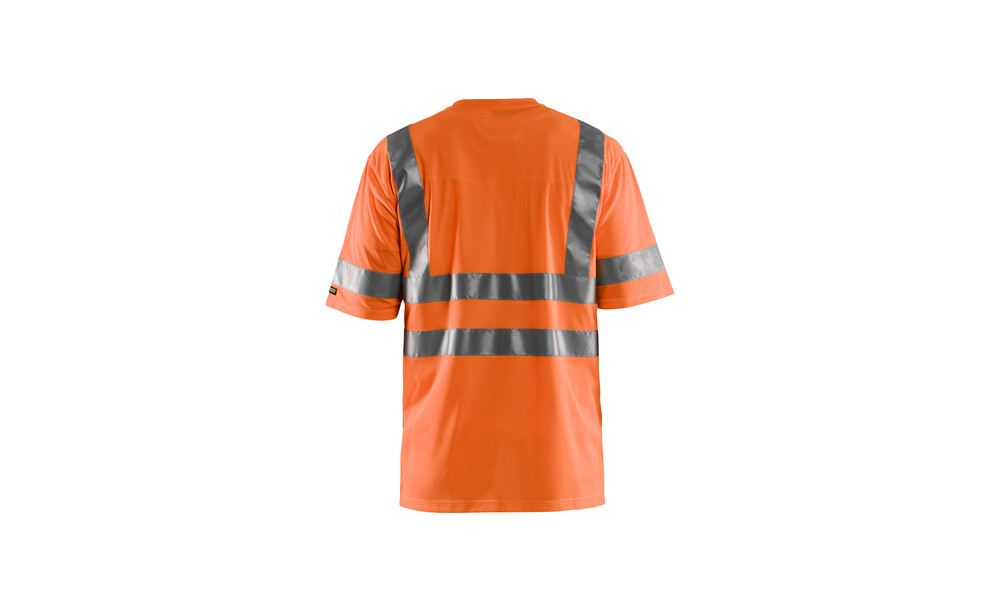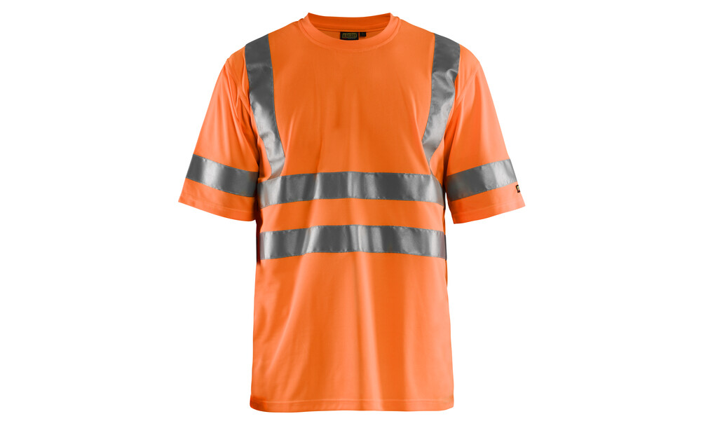 Bequemes fluoreszierendes High Vis T-Shirt mit Rundhalsausschnitt und kurzen Ärmeln. Der Stoff hat gute Atmungseigenschaften und das T-Shirt hat aufgenähte Reflexstreifen für eine gute Sichtbarkeit. Zertifiziert nach der Norm EN ISO 20471, Klasse 3, High Vis Schutzkleidung.
