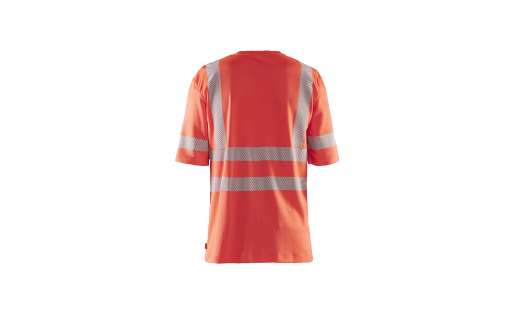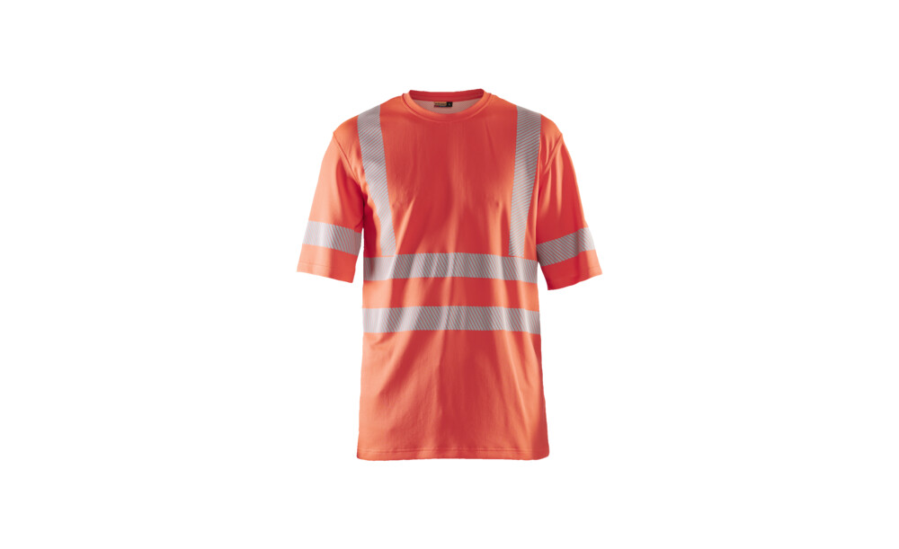 Ein High Vis T-Shirt mit unterbrochenen Reflexstreifen für zusätzliche Sichtbarkeit. Das Material des T-Shirts hat eine hohe Absorptionsfähigkeit, was bedeutet, dass der Schweiß von der Innenseite des Shirts nach außen transportiert wird und sich dort ablagert. Dort angekommen, lässt das Material die Feuchtigkeit schnell trocknen und schafft ein angenehmes Klima für den Körper. Es kann nicht industriell gewaschen werden. Es kann bei 60 Grad gewaschen werden. Es ist zertifiziert nach EN ISO 20471, XS-M Klasse 2, L-> Klasse 3.