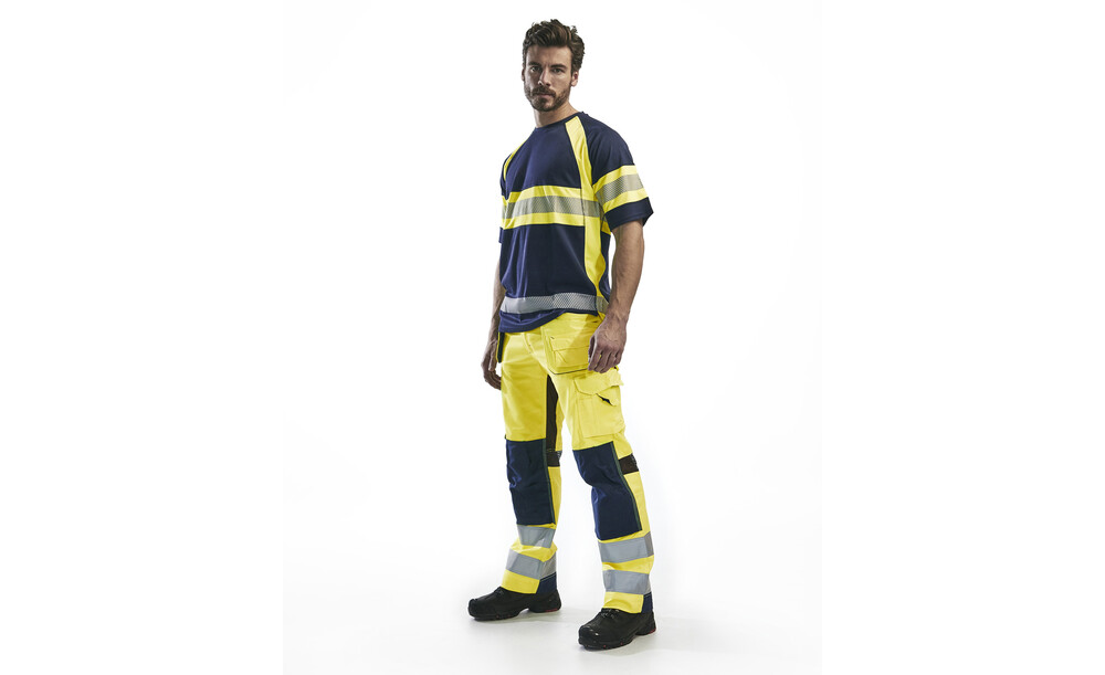 High Vis T-Shirt mit Anti-Geruch Behandlung, die unangenehmen Geruch verhindert. Das T-Shirt absorbiert die Feuchtigkeit und hat einen UV-Schutz. Die Reflexstreifen sind für extra Stretch und Atmungsaktivität unterbrochen. Rundhalskragen mit verstärkten Nähten. Zertifiziert nach EN ISO 20471 Klasse 1, Zertifizierungsgruppe D und EN 13758-2 UPF 40+.