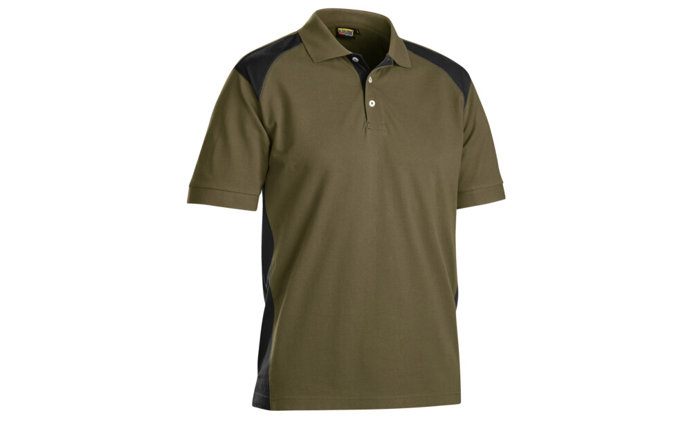 Zweifarbiges Polohemd mit kontrastreichen Details. Gerippter Kragen- und Ärmelbund. Halsöffnung mit Knöpfen. Verstärkte Nacken- und Schulternaht. Geteilter Saum an der Seite.