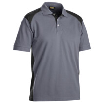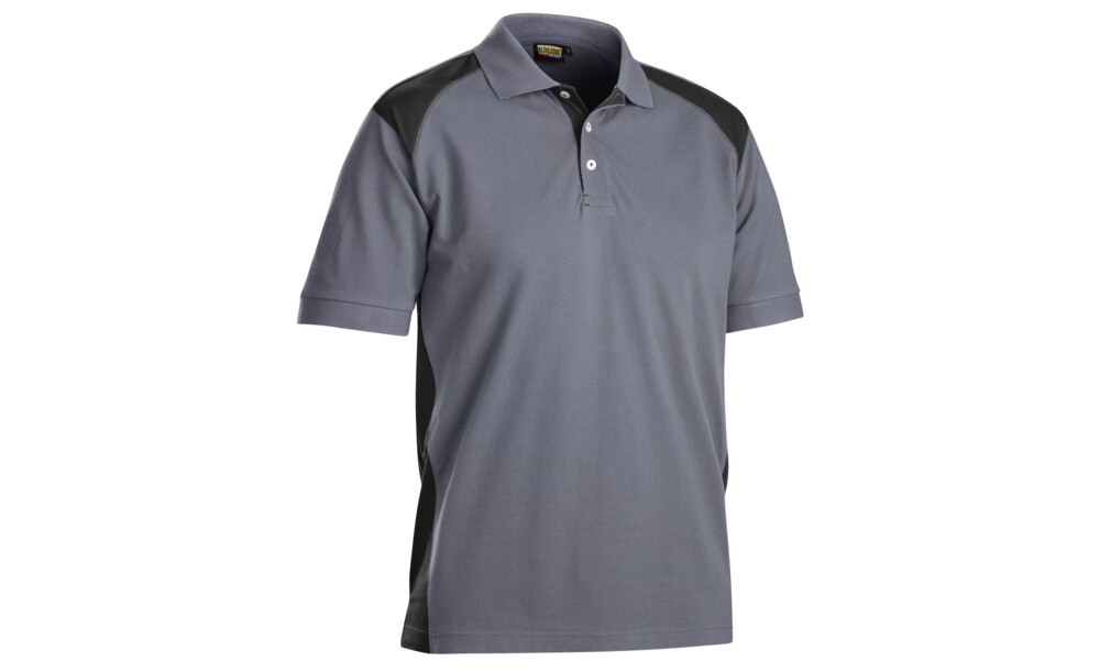 Zweifarbiges Polohemd mit kontrastreichen Details. Gerippter Kragen- und Ärmelbund. Halsöffnung mit Knöpfen. Verstärkte Nacken- und Schulternaht. Geteilter Saum an der Seite.