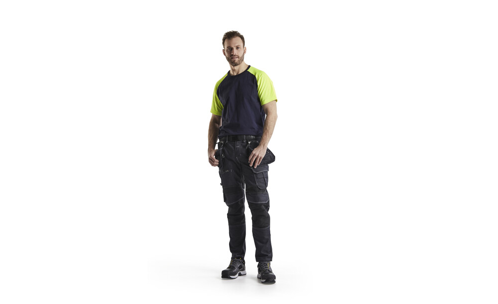 T-Shirt Navy/Gelb XS