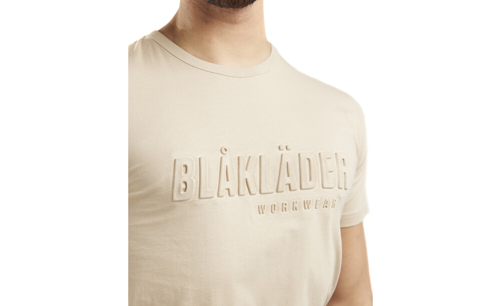 Stylisches Baumwoll-T-Shirt mit einem noch attraktiveren 3D-Druck auf der Brust mit der Aufschrift "Blåkläder". Ideal für das Tragen sowohl im Büro als auch in der Freizeit und außerdem zeigt es, dass Sie einen ausgezeichneten Geschmack für Arbeitskleidung haben.