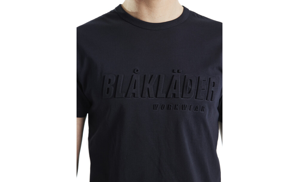 Stylisches Baumwoll-T-Shirt mit einem noch attraktiveren 3D-Druck auf der Brust mit der Aufschrift "Blåkläder". Ideal für das Tragen sowohl im Büro als auch in der Freizeit und außerdem zeigt es, dass Sie einen ausgezeichneten Geschmack für Arbeitskleidung haben.