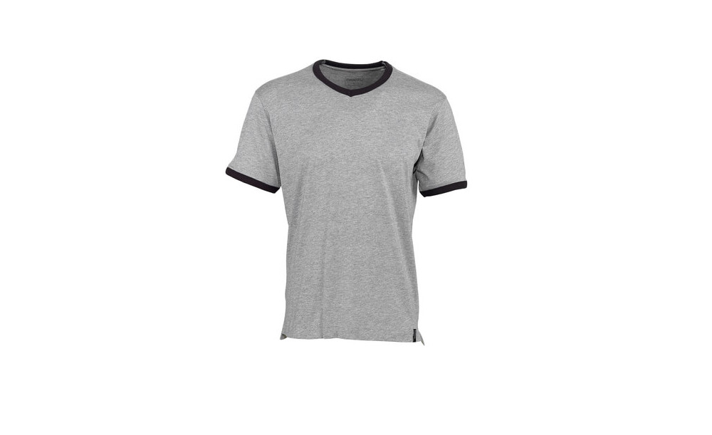 Gekämmte Baumwolle. Kräftige Qualität. Vorgeschrumpft. Moderne Passform. V-Ausschnitt. Rippenbündchen am Hals und an den Ärmeln. Nackenband. Rücken ist verlängert. Schlitze an den Seiten.
