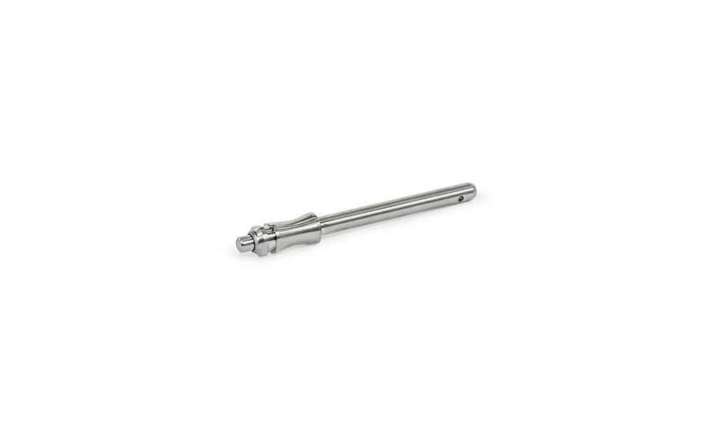 Kugelsperrbolzen GN 113.30 werden zum schnellen Fixieren, Verbinden und Sichern verschiedener Bauelemente eingesetzt. Eine typische Anwendung sind Lagerbolzen, die häufig montiert und wieder demontiert werden müssen. Durch das Drücken des gefederten Druckbolzens werden die beiden Kugeln entriegelt und beim Loslassen wieder verriegelt. Aufgrund der Werkstoffauswahl eignen sich Kugelsperrbolzen GN 113.30 für Einsatzfälle in stark korrosiven Umgebungen. Der Werkstoff Titan führt darüber hinaus zu einem um 40% reduzierten Gewicht gegenüber einer vergleichbaren Variante aus Stahl oder Edelstahl. Verwendung findet die Ausführung aus Titan z. B. im Leichtbau, im maritimen Umfeld und in der chemischen Fertigung. Im technischen Anhang sind die Belastbarkeiten für die zweischnittige Scherfestigkeit (Bruchkraft) angegeben.