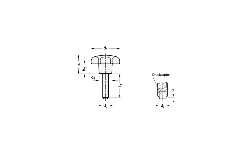 Sterngriffschrauben GN 6336.10 mit Druckzapfen aus Messing oder Kunststoff werden eingesetzt, wenn Druckstellen oder Beschädigungen vermieden werden sollen.