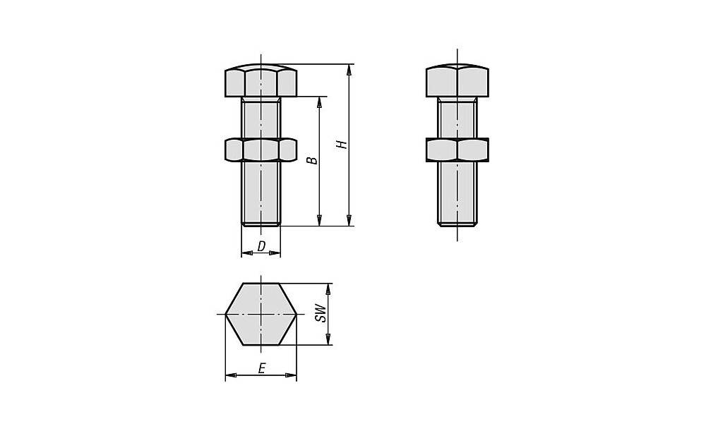 AUFLAGEBOLZEN M08X30, H=36, SW=13, VERGÜTUNGSSTAHL VERGÜTET UND BRÜNIERT